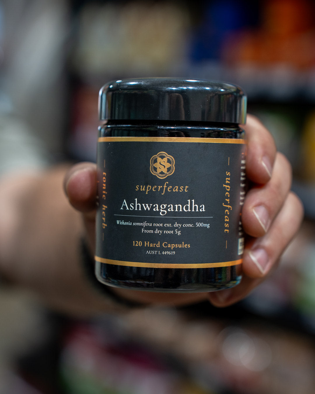 The Superfeast Ashwagandha capsules are packed with 10:1 extract powder (that’s 10kg of herb to 1kg of pure goodness!). They support reproductive hormones, promote healthy sleep, and help your body handle stress better. We took Ashwagandha while opening our Wodonga store, and we SWEAR by it!