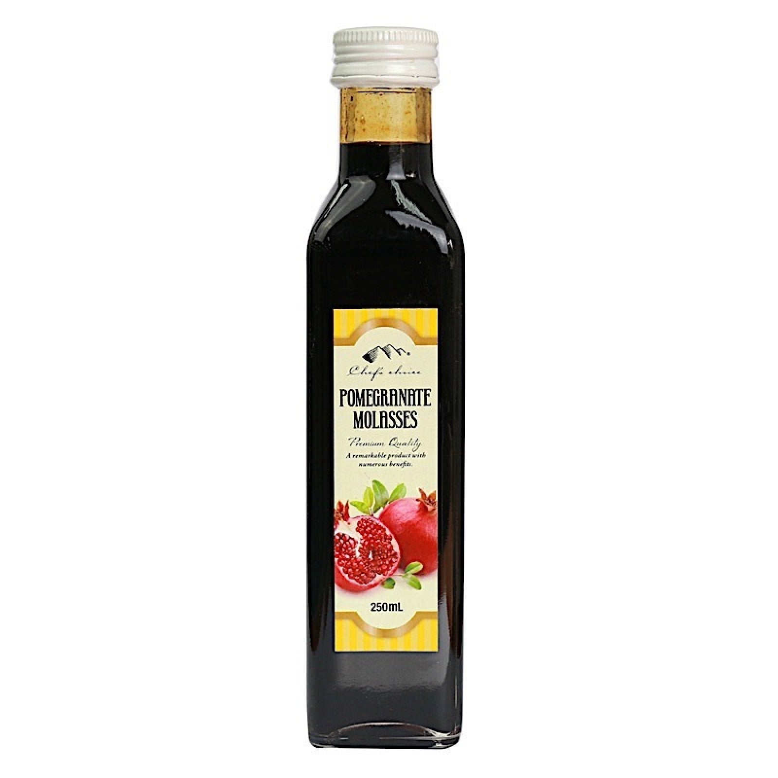 Chef's Choice Pomegranate Molasses is a unique thick, tart condiment used to prepare marinades, vinaigrettes, dressings and dips.