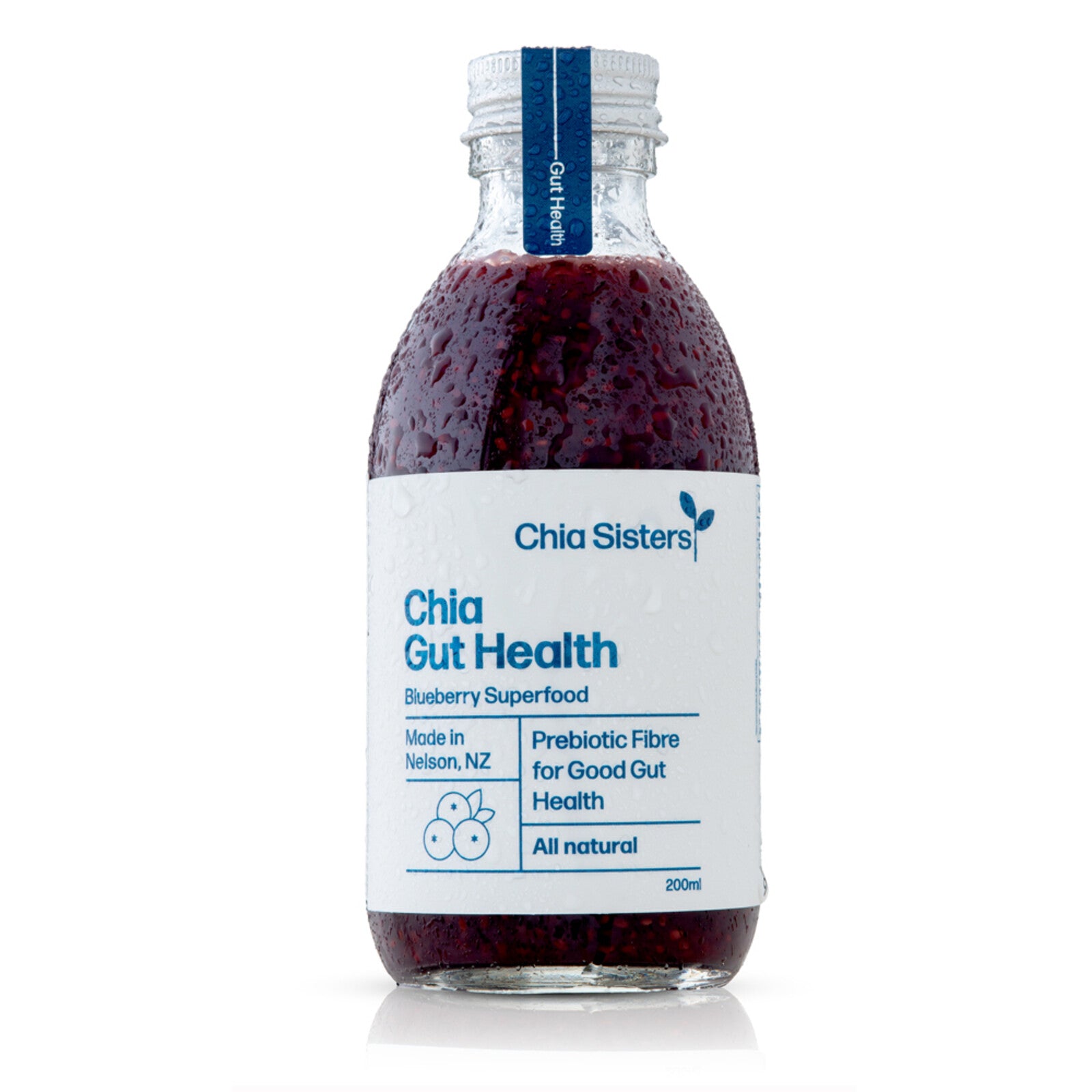 Chia Gut Health is a refreshing blend of blueberries, blackcurrant, and hydrated chia seeds.