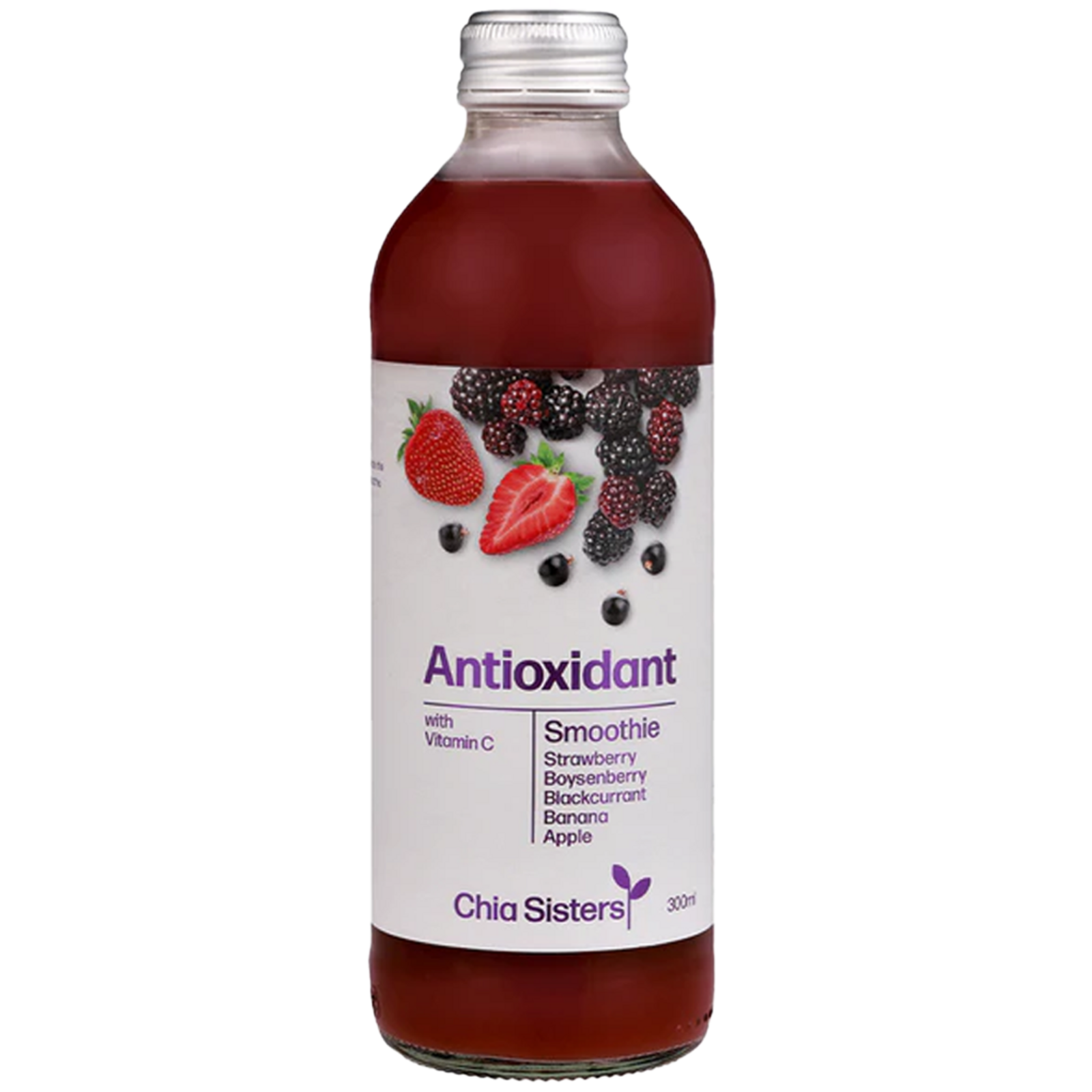 Deliciously Natural. A pure blend of fresh fruits, sourced locally where possible. This Immunity berry smoothie is made with boysenberries, strawberries, and banana. It's sweet and tart in flavour and simply all-natural.