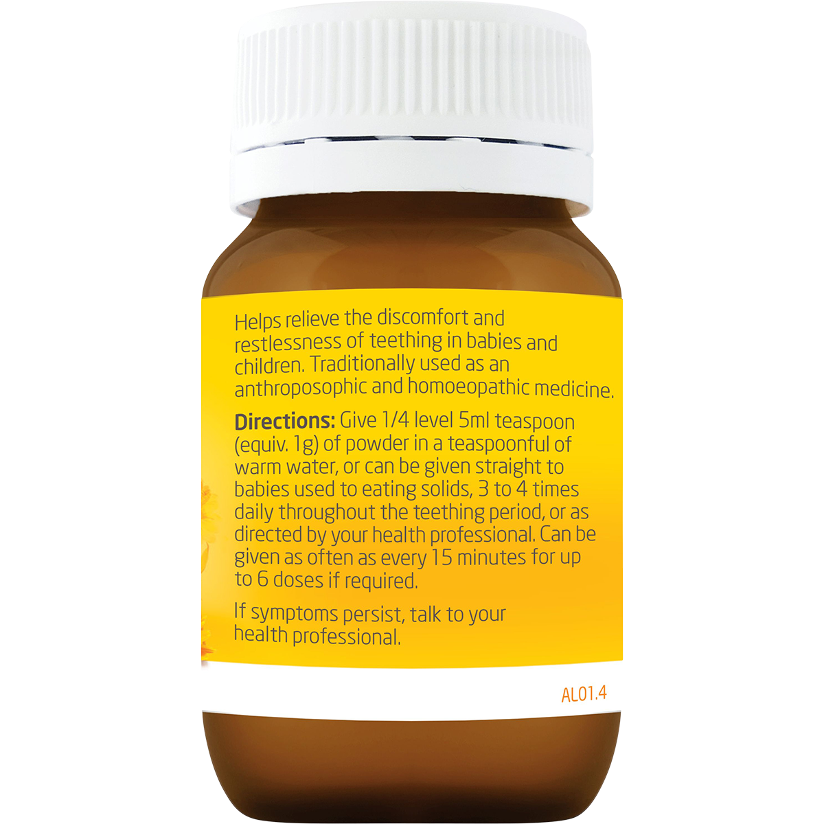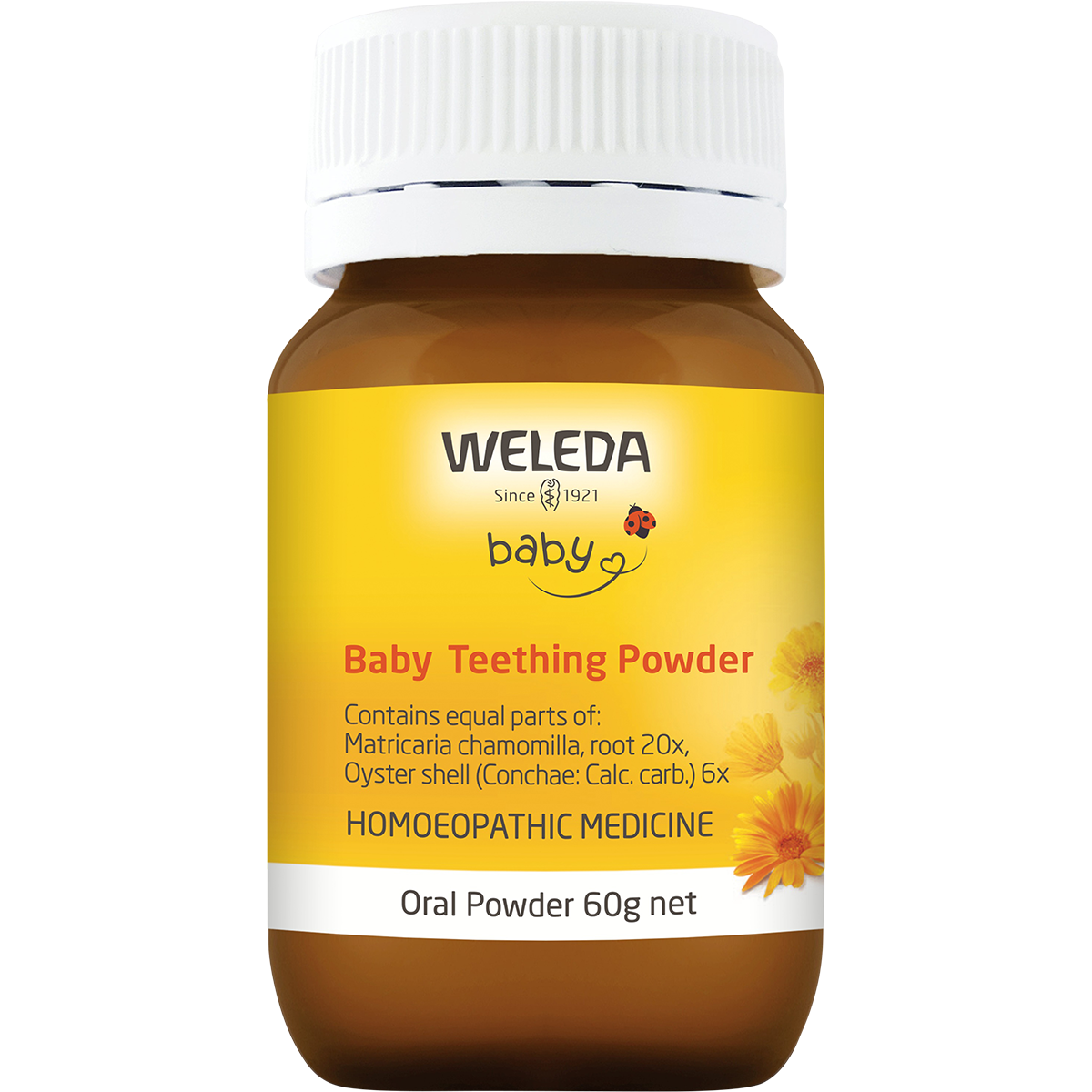 Ingredients: Contains equal parts of Matricaria Chamomilla, Root 20x Oyster shell (Conchae: Calc, Carb.) 6x. Contains Lactose.